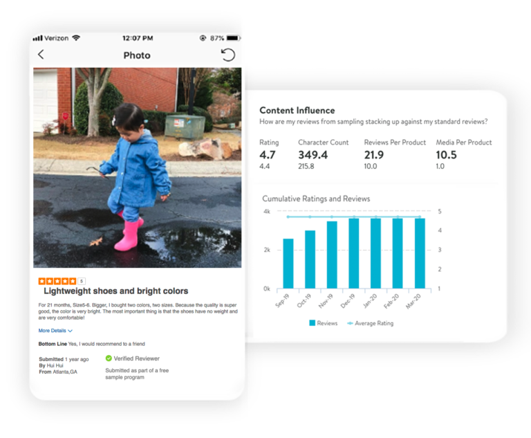 Generate fresh ratings and reviews content fast with end-to-end product sampling that delivers industry-best 90% average review submission rates.