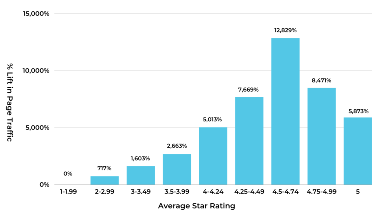 But – really – this is splitting hairs. The overall impact of a strong average rating on product page traffic is immense whichever way you slice it.