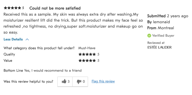Be sure to appropriately badge all reviews. For example, if a review was written by a verified buyer, indicate it in the review. And if a shopper received a free sample, disclose it. Providing information about the source of reviews will bolster shoppers’ trust – and help them make more informed purchase decisions.