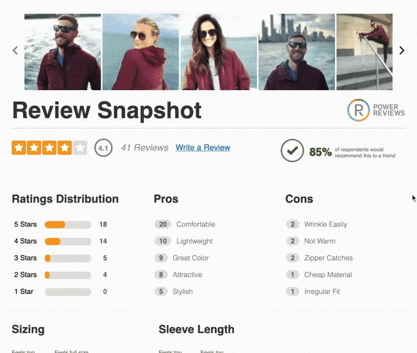What makes a top-performing review display? There are some elements that are more important for certain industries over others. For example, an apparel retailer needs to add size and fit to their review display, but that wouldn’t be applicable for a food and beverage brand.