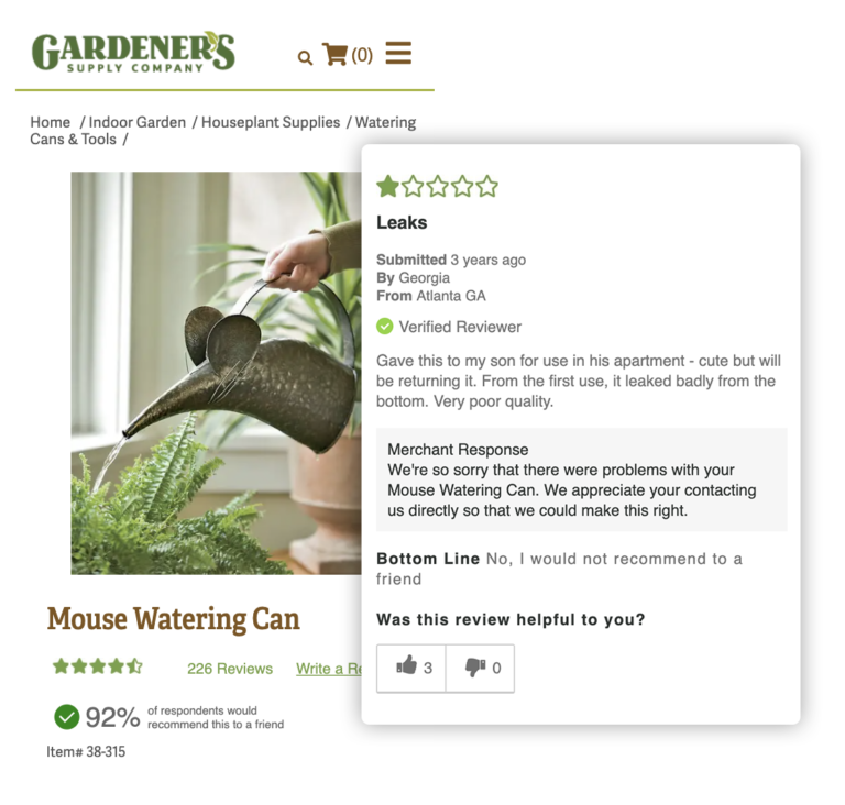 The takeaway: Don’t be afraid of negative reviews. Trust that most customers can connect the dots. If the negative review is from someone with a completely different use case than themselves — such as a grandma buying a tricycle as a gift vs. an experienced dad who’s bought several tricycles before — it’s not going to affect their behavior. Rather, it can be an opportunity for you to win customers over and validate your brand. Show them that you are listening and responding to customers.