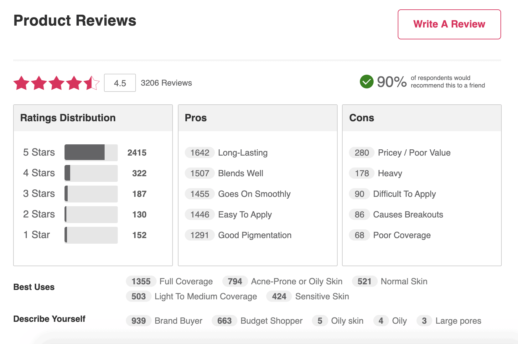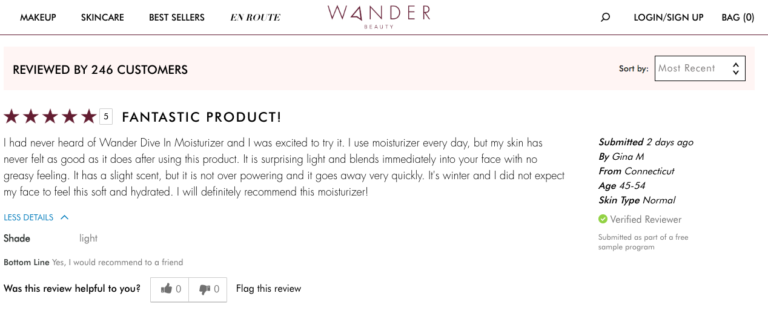 Now, the specific order in which these appear, or even the content (in the case of demographic information, for example) may vary from brand to brand. Here are a few review snapshots that show how brands from different verticals implement their review display: