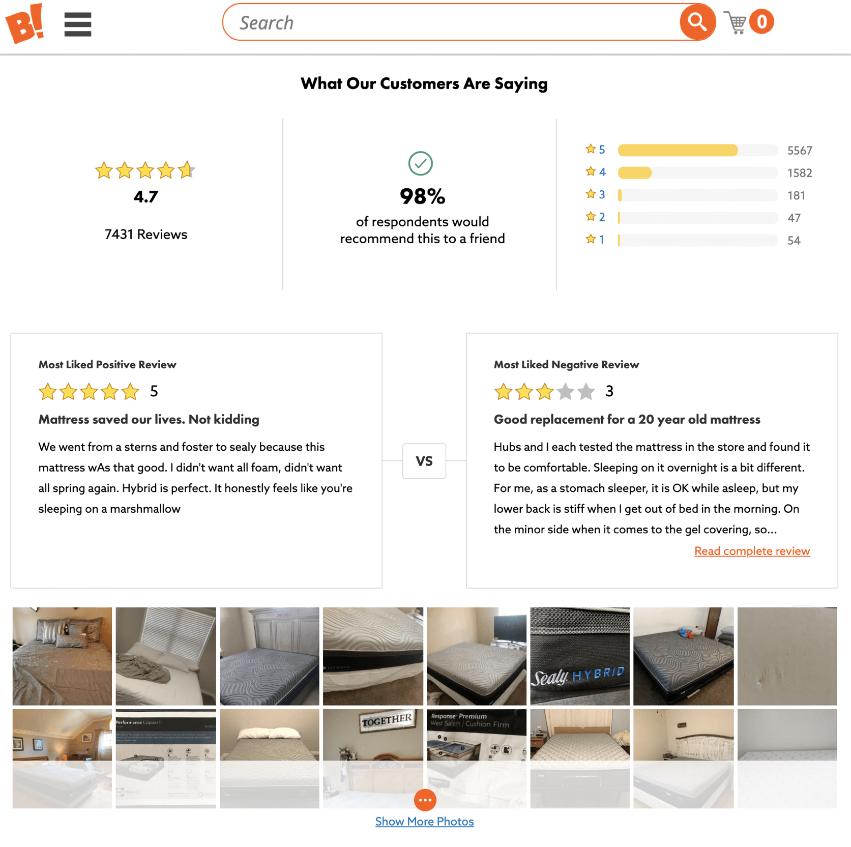 When implementing a review display for our clients, the #1 question we get is about one-star reviews. Understandably, brands worry about bad reviews scaring customers away.The thing is, negative reviews actually help your brand. 82% of consumers specifically seek out negative reviews. Our data shows the top three things people interact with in a review display are all related to negative reviews (i.e. sorting by 1-star reviews, filtering the most helpful negative review, and searching for the most negative reviews).
