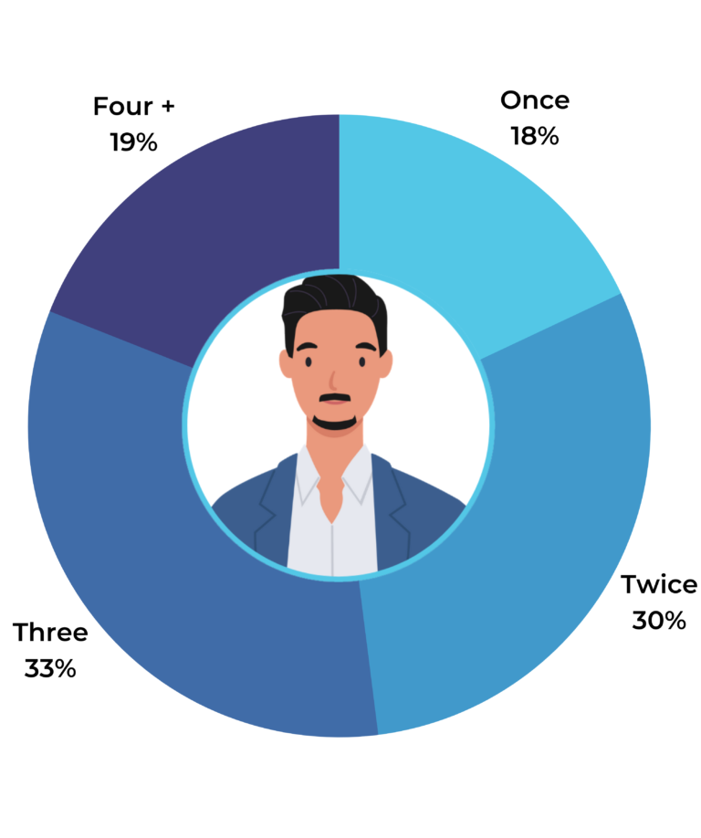 How many times does it take for a shopper to be willing to submit a review? The largest portion of shoppers – 35% – say they need to buy or use a product three times before leaving a review. This is up significantly from 20% in 2021.