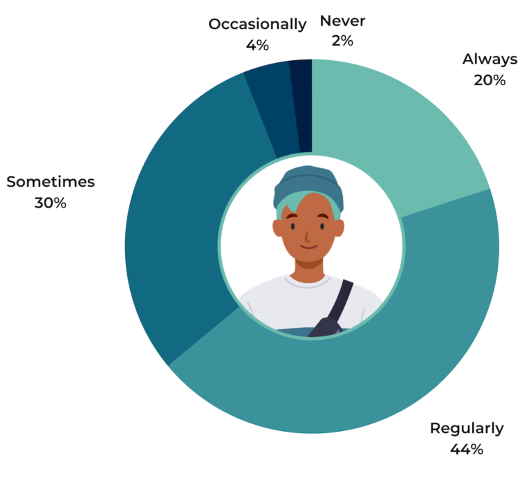 Of note, younger consumers are actually less likely to read Q&A content than older generations. 64% of Gen Z shoppers read Q&A always or regularly, compared to 72% of Boomers, 73% of Gen X’ers and 70% of Millennials.