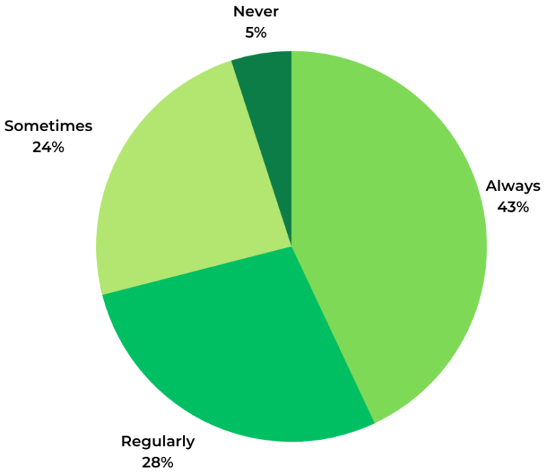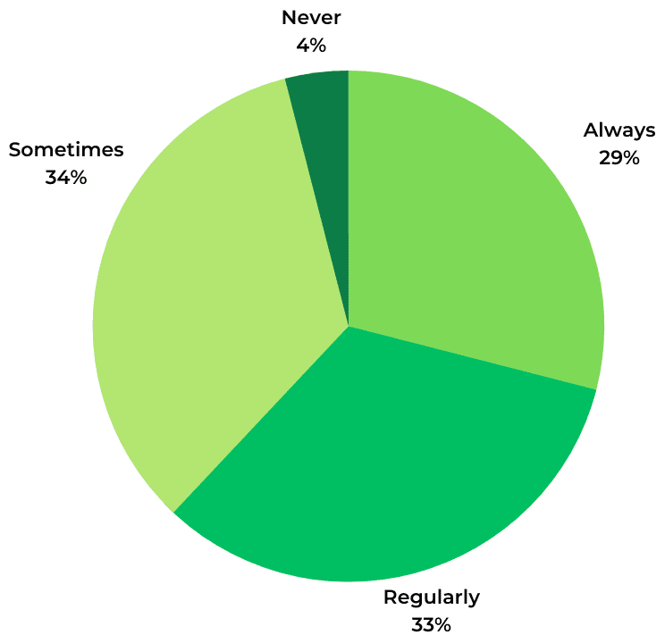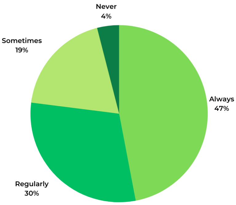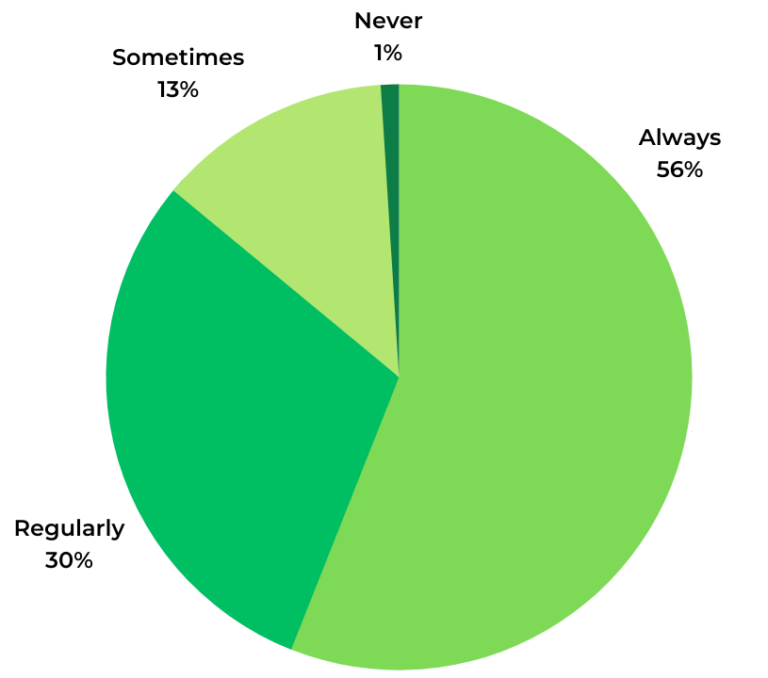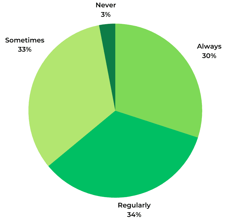 Nearly all (97%) of consumers read Q&A when shopping for clothing online at least sometimes. 64% do so regularly or always.