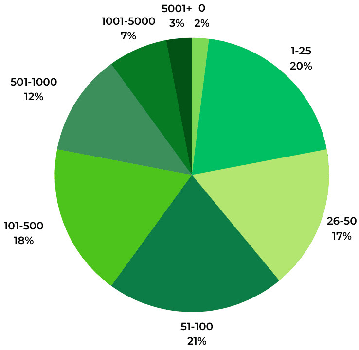 The largest quantity (21%) of consumers say that ideally, they’d like to find between 51 and 100 reviews for a given footwear product. However, many consumers want far more reviews.