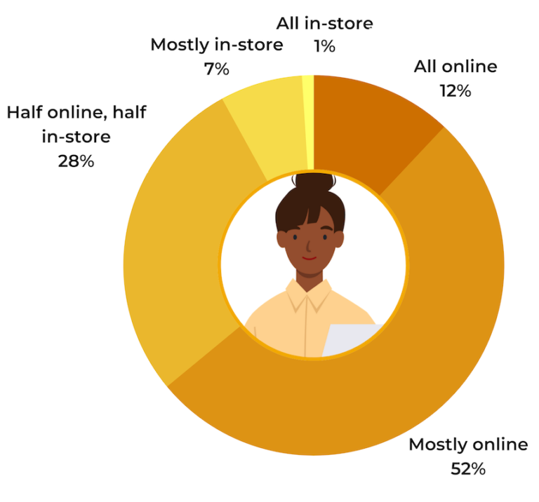 - Nearly all (99%) of consumers will do at least a portion of their holiday shopping online this year. 50% will do most of their holiday shopping online, and 13% will do all of it online.